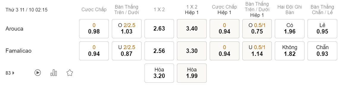 Tỉ lệ kèo Arouca vs Famalicao
