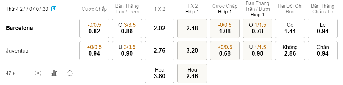 Nhận định, soi kèo Barcelona vs Juventus 07h30 ngày 27/07/2022