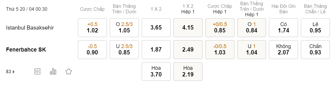 Soi kèo hiệp 1 Basaksihir vs Fenerbahce: 0.85*0/0.5*1.03