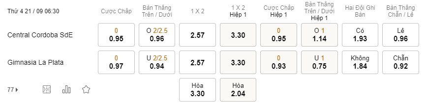 Soi kèo tài xỉu Central Cordoba vs Gimnasia: 0.96*2/2.5*0.94
