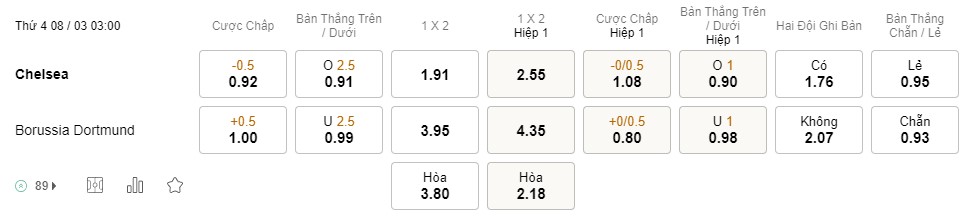 Soi kèo tài xỉu Chelsea vs Dortmund: 0.91*2.5*0.99