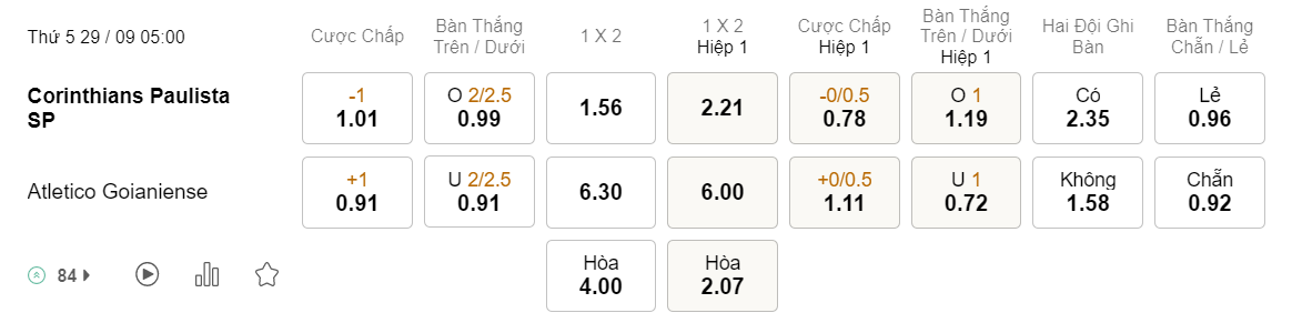 Soi kèo châu Á Corinthians vs Goianiense: 1.01*1*0.91