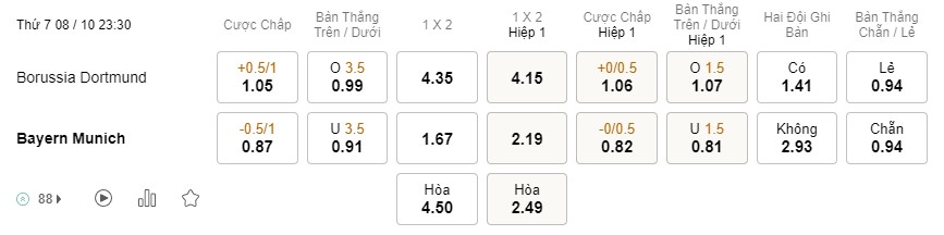 Soi kèo hiệp 1 Dortmund vs Bayern: 1.06*0/0.5*0.82