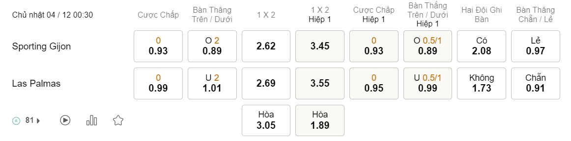 Soi kèo châu Á Gijon vs Las Palmas: 0.93*0*0.99
