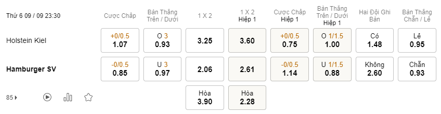 Soi kèo hiệp 1 Holstein Kiel vs Hamburg: 0.75*0/0.5*1.14