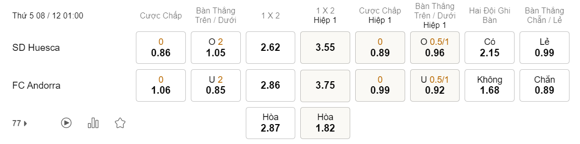 Soi kèo tài xỉu Huesca vs Andorra: 1.05*2*0.85