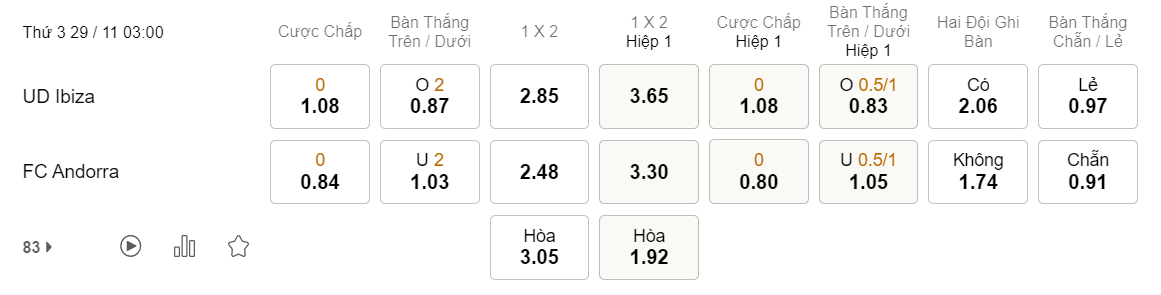 Soi kèo hiệp 1 Ibiza vs Andorra: 1.08*0*0.80