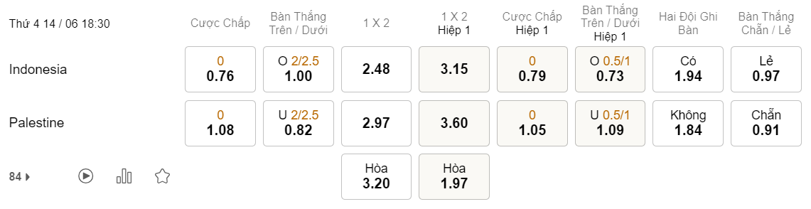 Soi kèo hiệp 1 Indonesia vs Palestine: 0.79*0*1.05