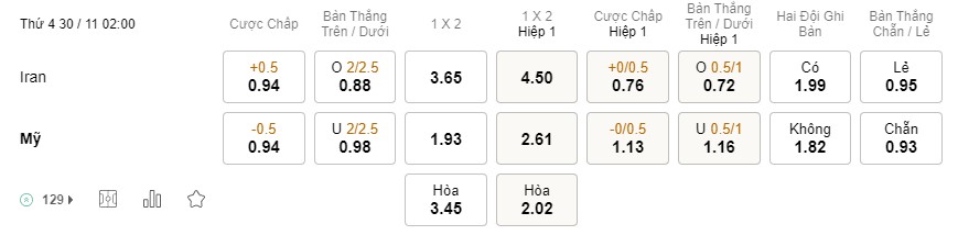 Soi kèo hiệp 1 Iran vs Mỹ: 0.76*0/0.5*1.13
