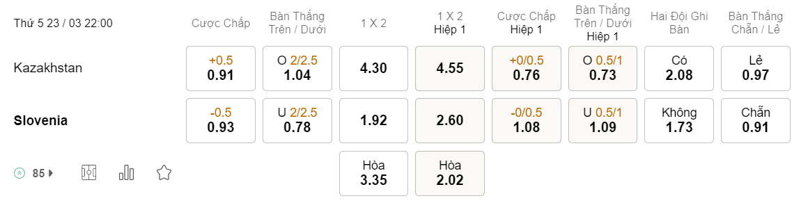 Tỉ lệ kèo Kazakhstan vs Slovenia