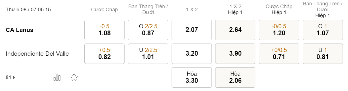 Soi kèo châu Á Lanus vs Independiente: 1.08*0.5*0.82