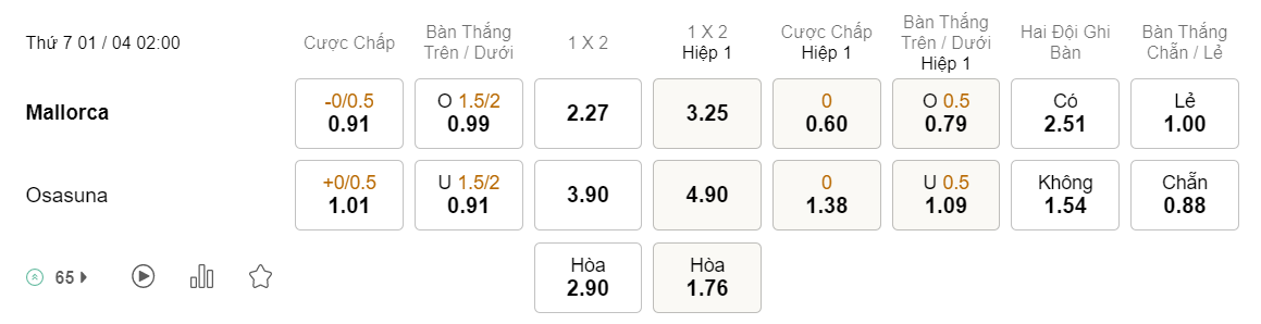 Soi kèo tài xỉu Mallorca vs Osasuna: 0.99*1.5/2*0.91