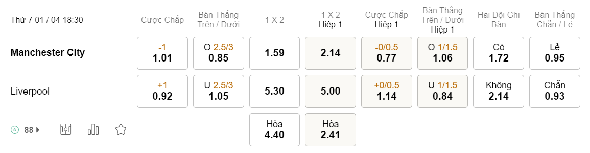 Soi kèo châu Á Man City vs Liverpool: 1.01*1*0.92