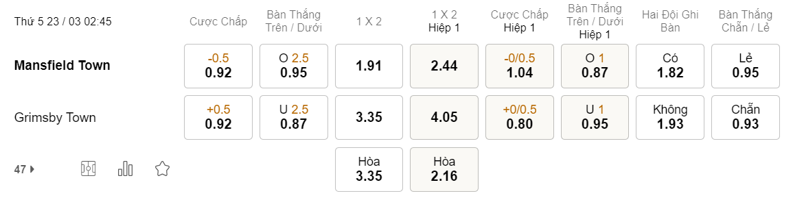Soi kèo châu Á Mansfield vs Grimsby: 0.92*0.5*0.92