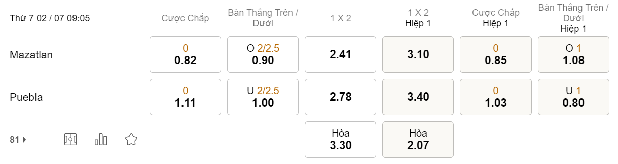 Soi kèo tài xỉu Mazatlan vs Puebla: 0.90*2/2.5*1.00