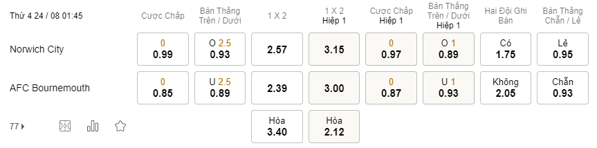 Soi kèo hiệp 1 Norwich vs Bournemouth: 0.97*0*0.87