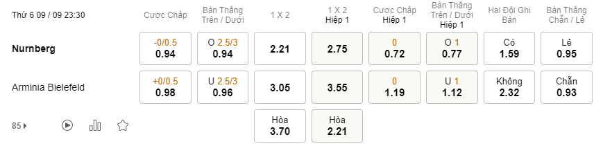 Soi kèo hiệp 1 Nurnberg vs Bielefeld: 0.72*0*1.19
