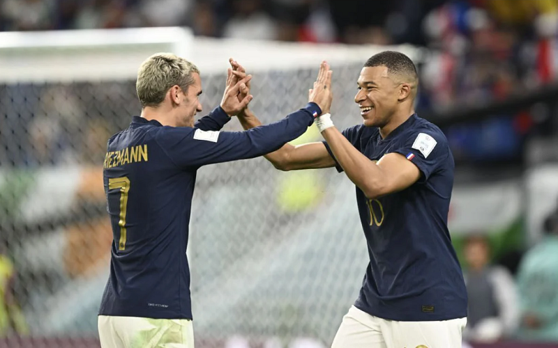 Pháp: Lloris, Varane, Theo, Upamecano, Kounde, Rabiot, Tchouameni, Giroud, Griezmann, Dembele, Mbappe.