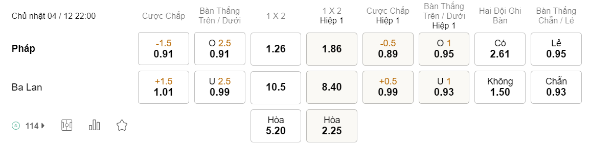 Soi kèo tài xỉu Pháp vs Ba Lan: 0.91*2.5*0.99