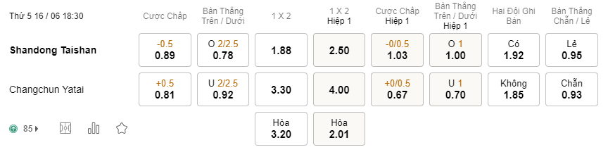 Trong khi đó nhìn sang đội chủ nhà Shandong Taishan thời gian qua đang thể hiện phong độ thi đấu không thực sự tốt. Cụ thể, trong 5 trận đấu gần nhất, các cầu thủ của đội bóng này đã có được 2 trận thắng và thua 3 trận còn lại. Với phong độ như vậy, các chuyên gia cho rằng Changchun Yatai sẽ là lựa chọn chính xác hơn ở kèo đấu này.