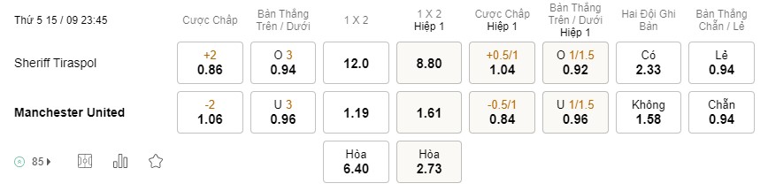 Soi kèo châu Á Sheriff vs MU: 0.86*2*1.06