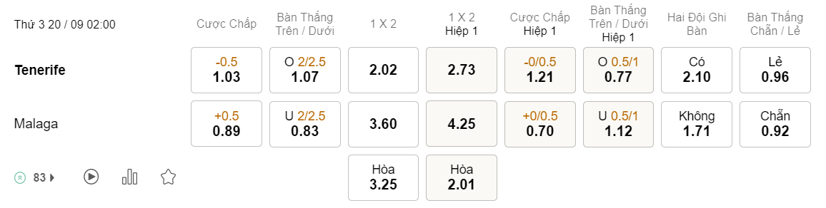 Soi kèo hiệp 1 Tenerife vs Malaga: 1.21*0/0.5*0.70