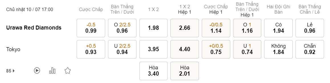Soi kèo châu Á Urawa Reds vs Tokyo: 0.99*0.5*0.93