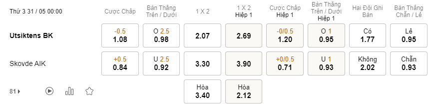 Theo thống kê, 3 trận đấu gần nhất của Utsiktens thì có tới 2 trận họ đã ghi được bàn thắng ngay trong 45 phút đầu tiên. Ở trận đấu sắp tới khi phải gặp một đội bóng có hàng phòng ngự cũng không được đánh giá cao, vì vậy nhiều khả năng đội chủ nhà sẽ sớm cụ thể hóa những lợi thế của mình thành bàn thắng ngay trong hiệp đấu đầu tiên.